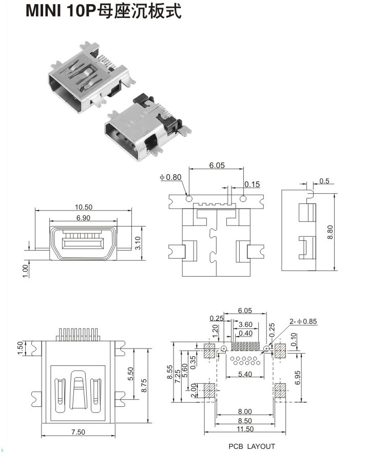 MIMI 10P母座沉板式
