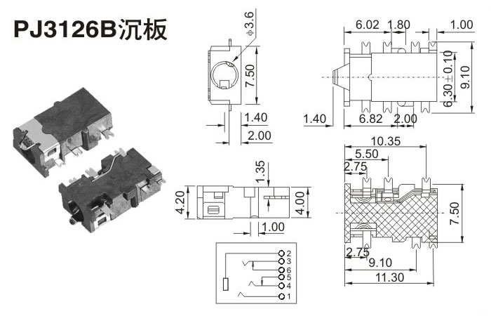 耳機插座PJ3126B沉板
